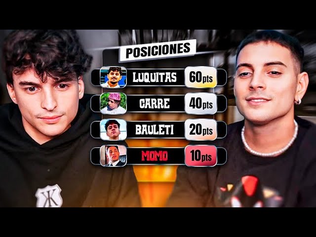 00:45–01:40: Definen la idea: un programa tipo concurso con streamers invitados (Duende Pablo, Luquita Rodríguez, Momo), en formato de torneo eliminatorio y con premios grandes (30.000–100.000 USD).